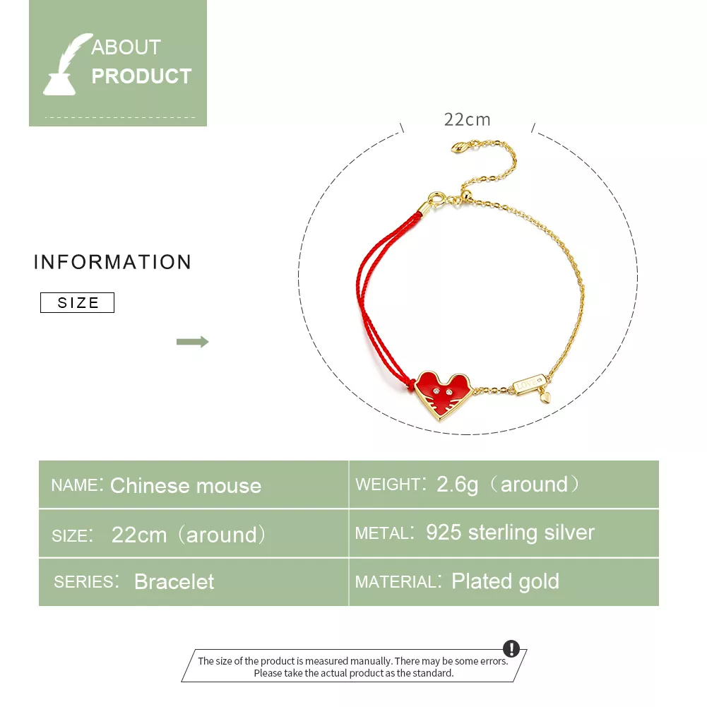 14k Pozlacené Řetízkový náramek Čínská Myš SCB174, Kubická zirkonie, Pandora styl