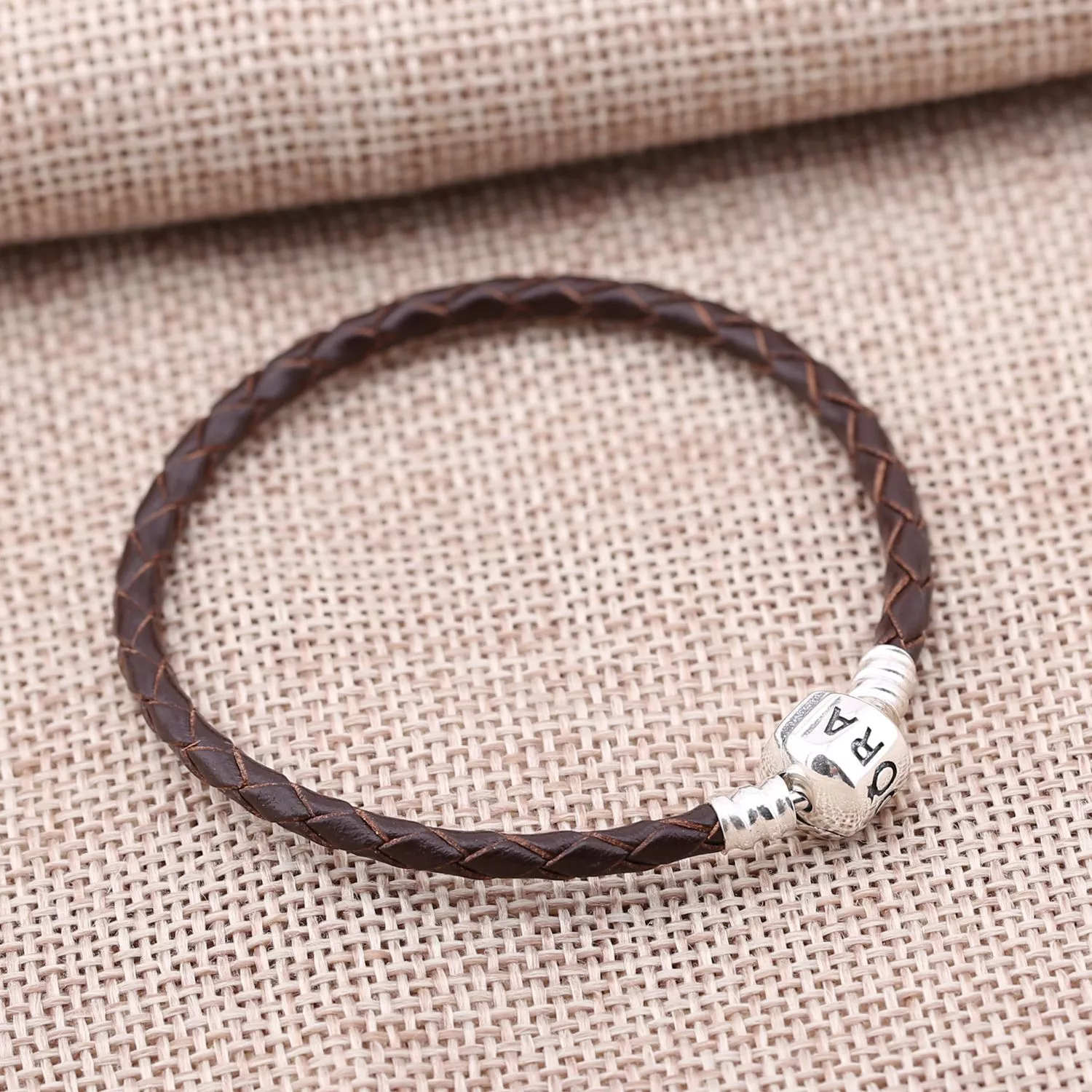 moments jednoduchý pletený kožený náramek pandora 590705crd jc