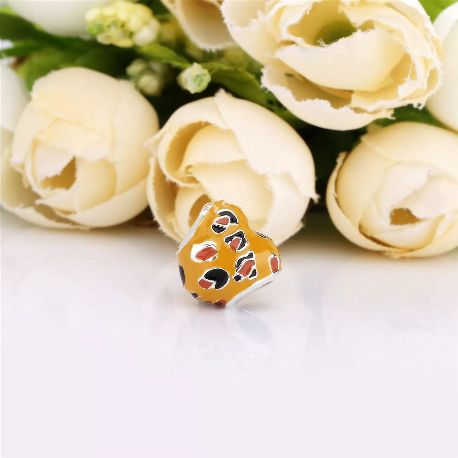Ag925/1000, žlutá, oranžová, černá a průhledná glazura