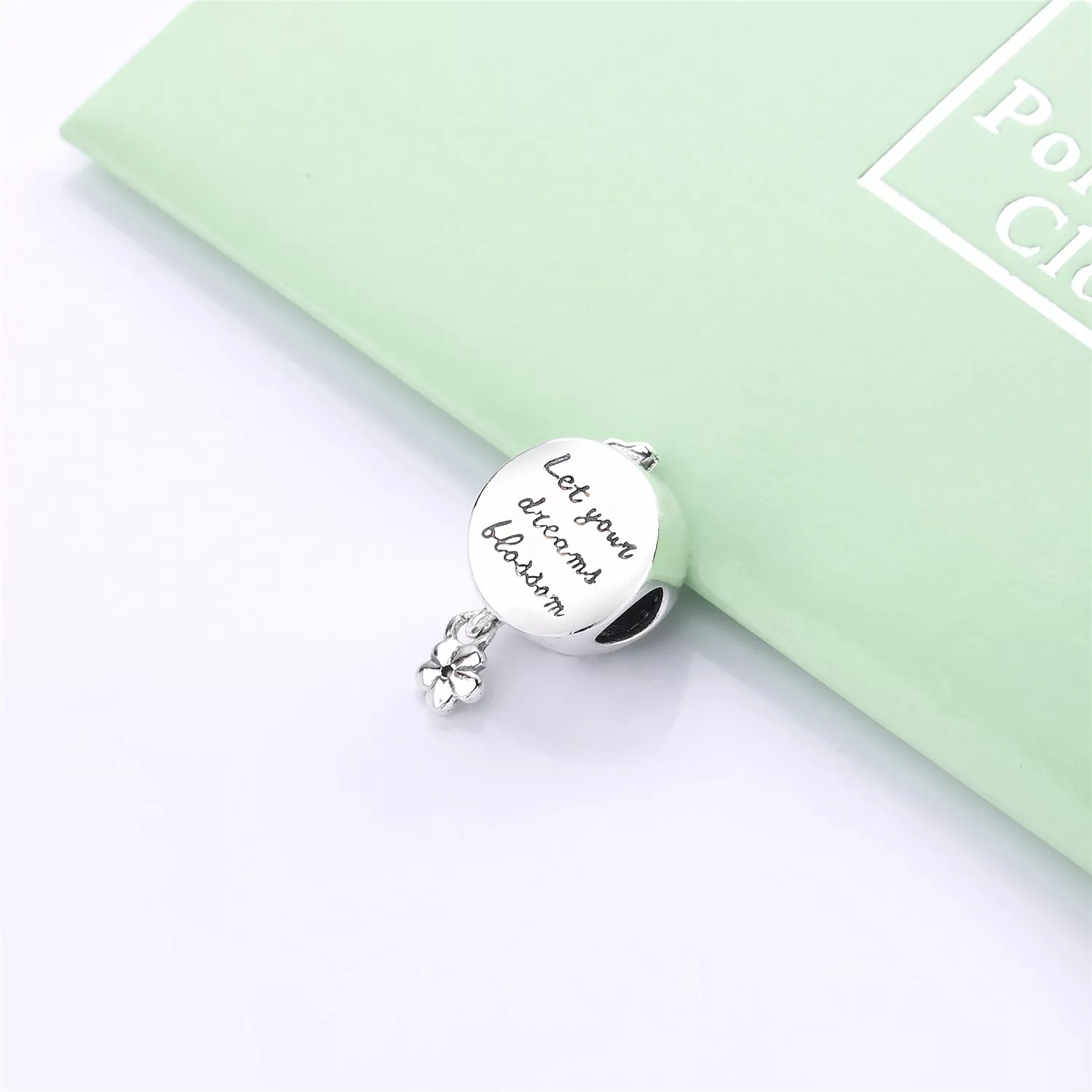 Ag925/1000, bílá, průhledná růžová, fialová, zelená, modrá a žlutá glazura, průhledná kubická zirkonie, rytina "Let your dreams blossom"