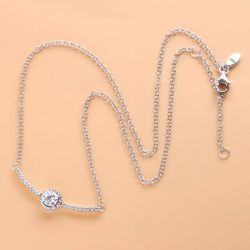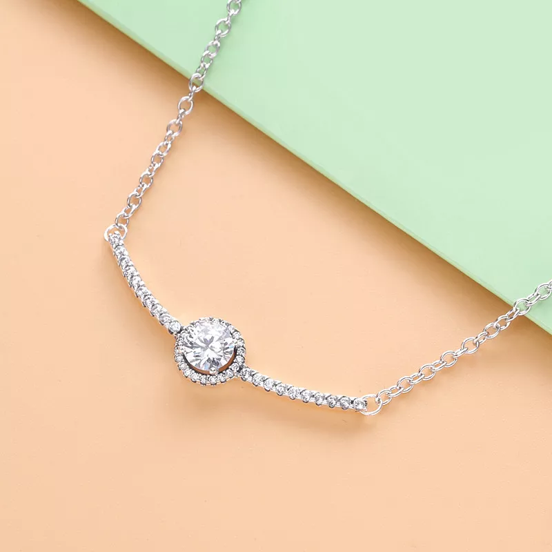 Ag925/1000, průhledná kubická zirkonie, délka 45cm nastavitelná na 37cm a 41cm. Rafinované nenápadné designy, které se zdají jednoduché, jsou často nejpůsobivější a jejich nadčasovost ohromuje po desetiletí. Užijte si esenci elegance s naším krátkým náhrdelníkem ze stříbra s čirými kubickými zirkoniemi, který plynule navazuje na klasický, solitérní náhrdelníkový přívěsek s moderním a výrazným podélným detailem v elegantním a zároveň aktuálním vzhledu. Noste tento sofistikovaný šperk samostatně a nechte rozzářit všechny prvky své osobnosti, nebo ho vrstvěte s dalšími kousky v různých délkách k vytvoření poutavého looku.