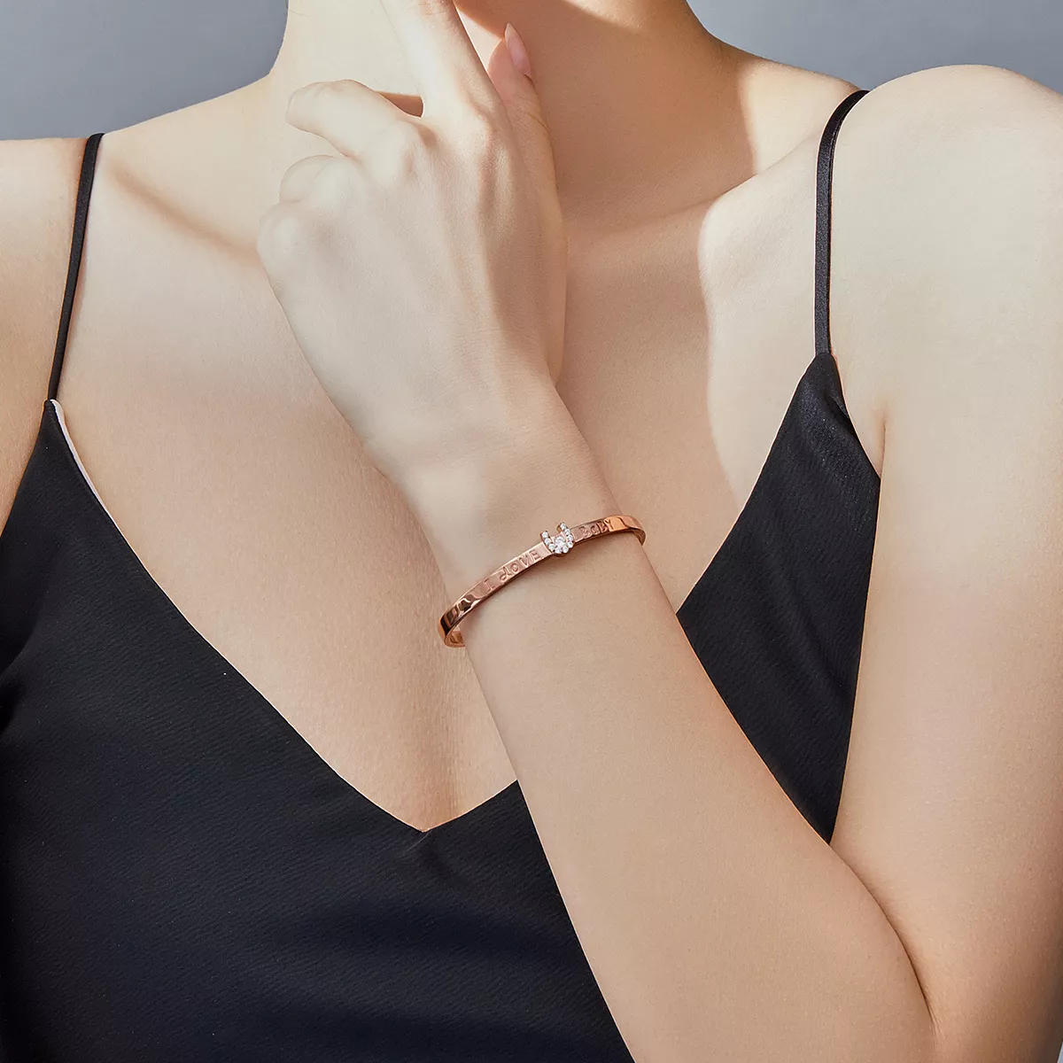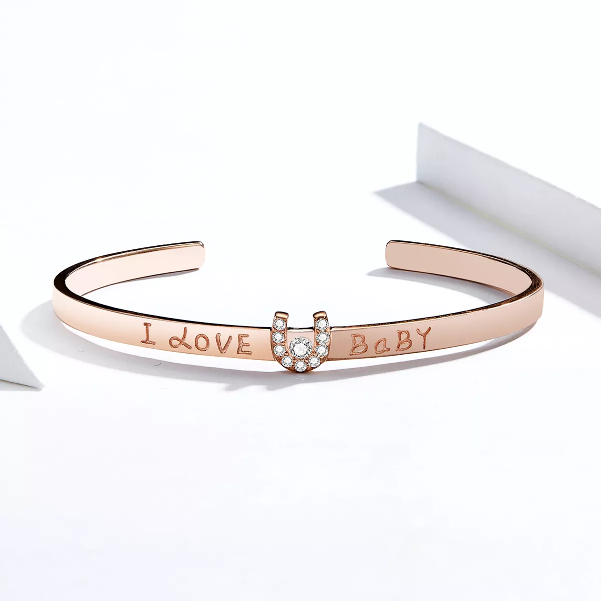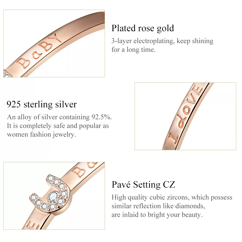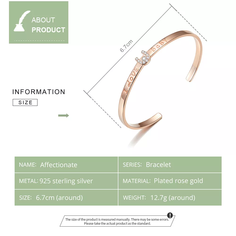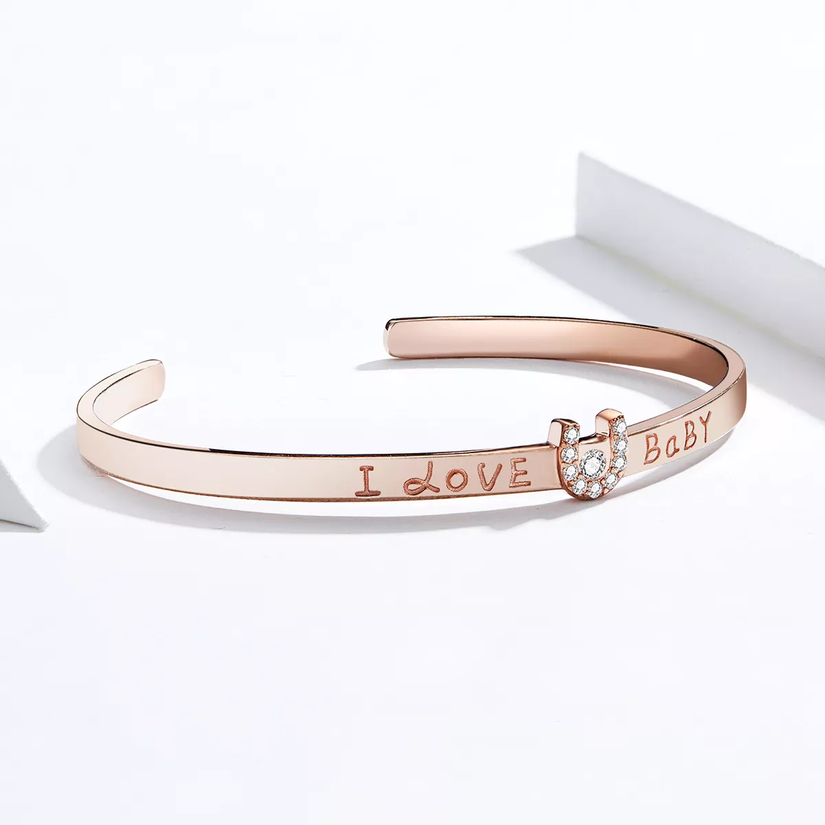Rose Gold Otevřený náramek Miluji Tě Zlato SCB169, Kubická zirkonie, Pandora styl
