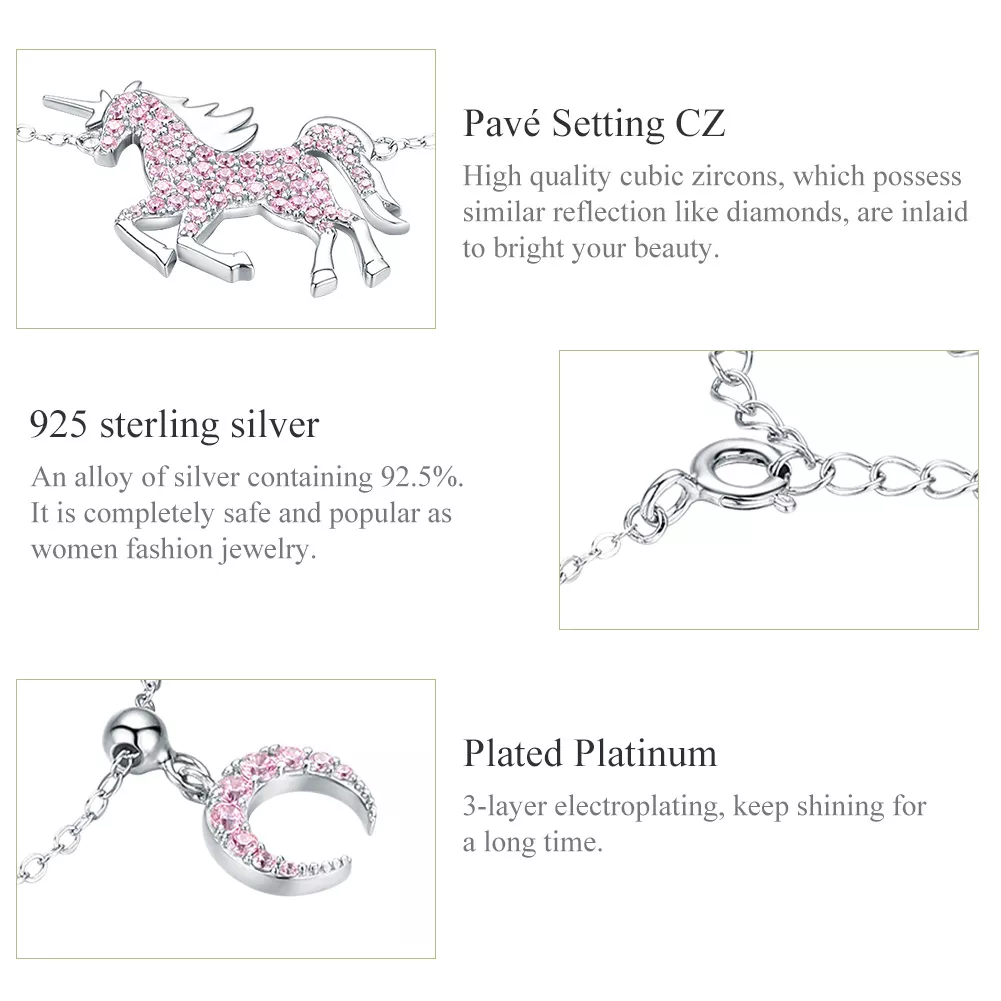 stříbrné řetízkový náramek jednorožec scb155 kubická zirkonie pandora styl