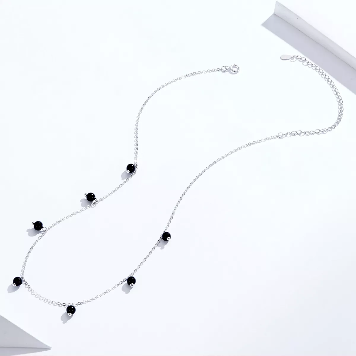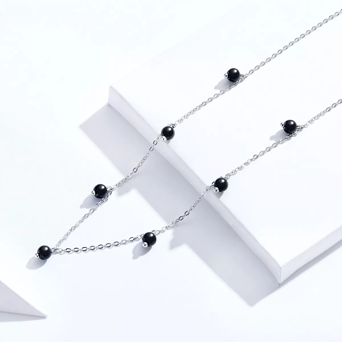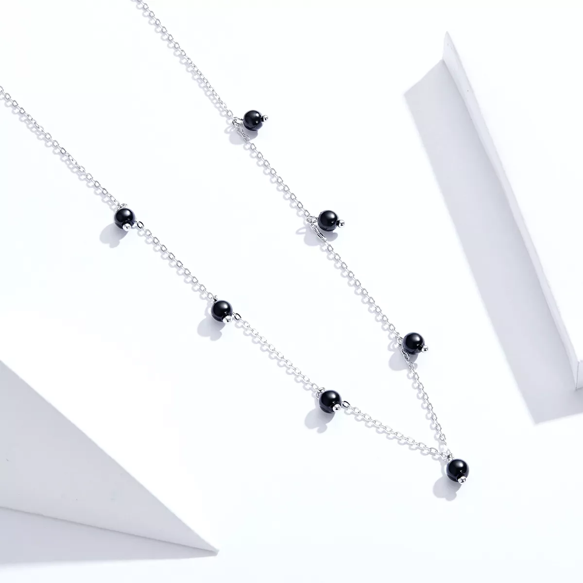 Stříbrné Náhrdelník Černý Syntetický Krystal SCN392 Pandora styl