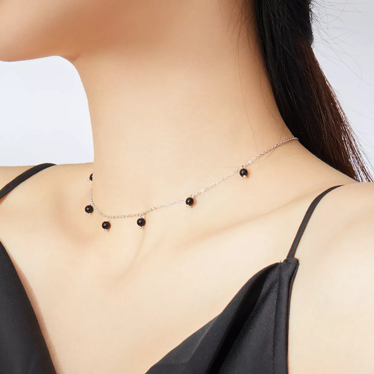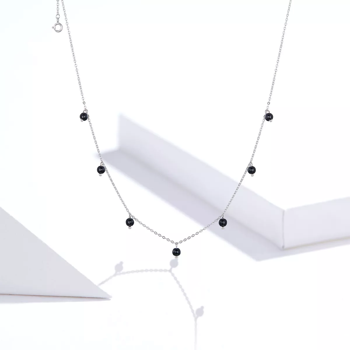 stříbrné náhrdelník černý syntetický krystal scn392 pandora styl