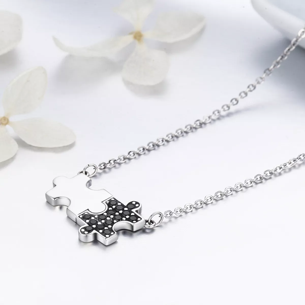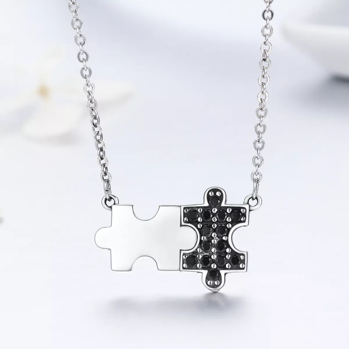 Stříbrné Náhrdelník Dynamické Puzzle SCN129, Kubická zirkonie, jako Pandora