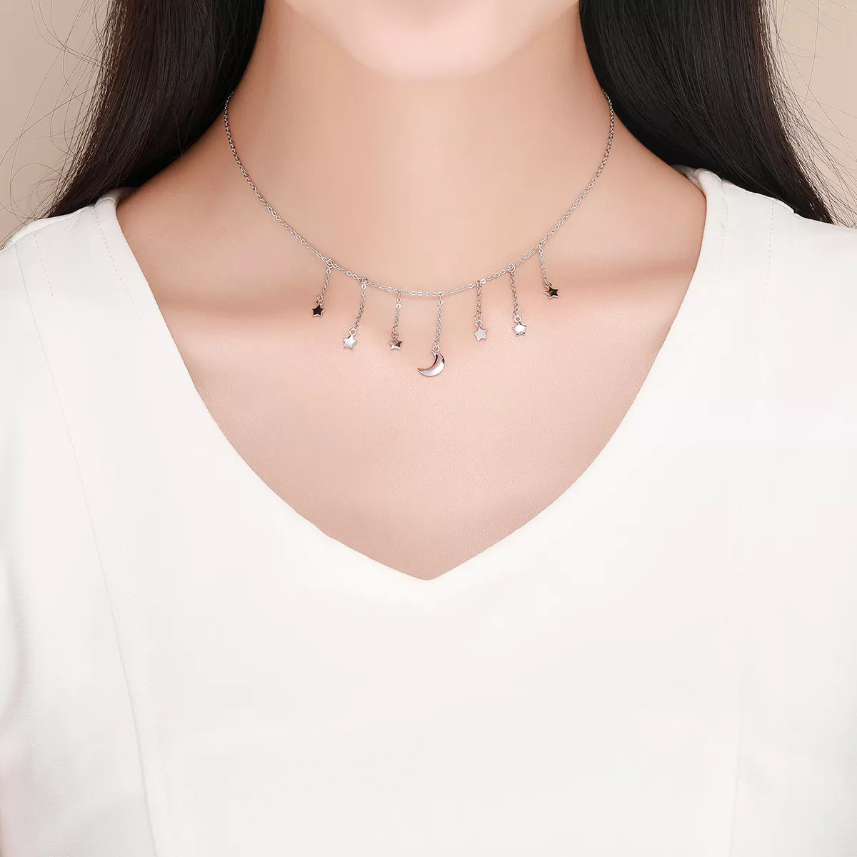stříbrné náhrdelník zářící hvězdný měsíc scn301 pandora styl