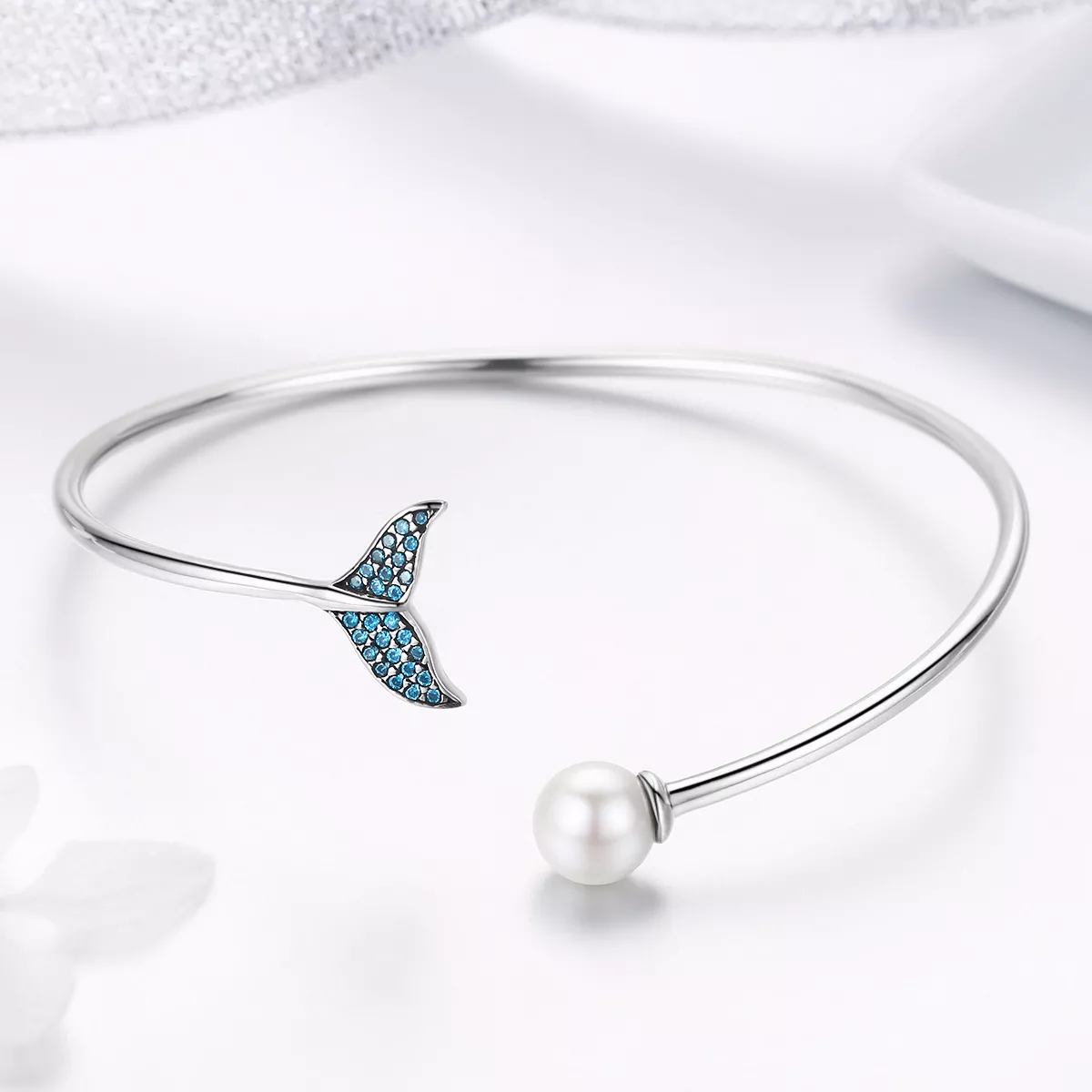 stříbrné otevřený náramek mořská panna je slza scb123 kubická zirkonie pandora styl