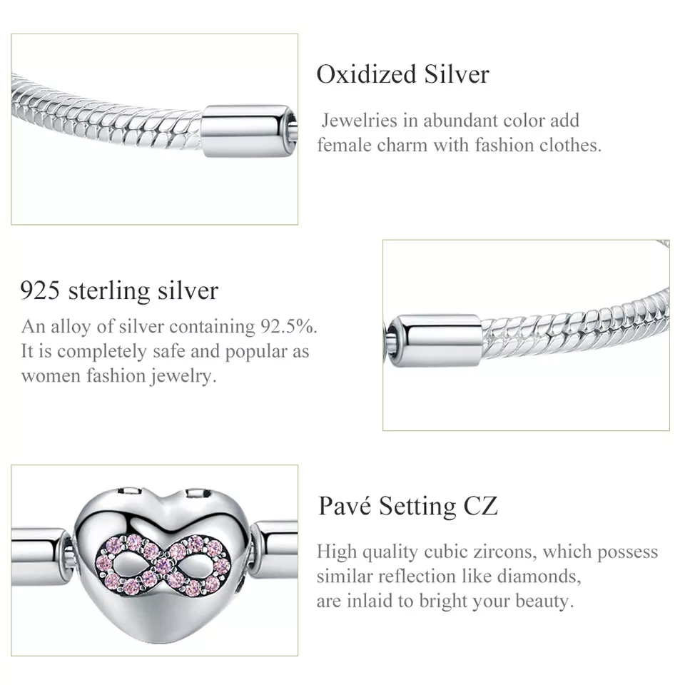 stříbrné pevný náramek srdce věčnosti scb142 kubická zirkonie pandora styl